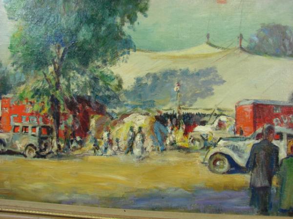 | An impressionist oil on canvas from the early '30s depicting a Russell Show lot by Polish-American artist and illustrator Walter Krawiec (1889-1982) |