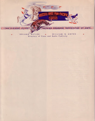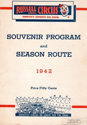 | Note below the cover illustration of the '42 Russell Brothers program the use of another of its most frequently employed tag lines: "GREATEST CIRCUS ON EARTH FOR THE PRICE" |
